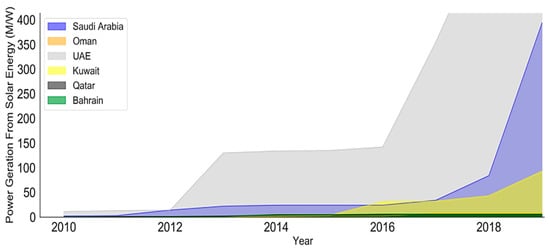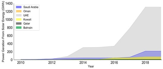 Energy generation from solar energy in GCC region, 2010–2019.