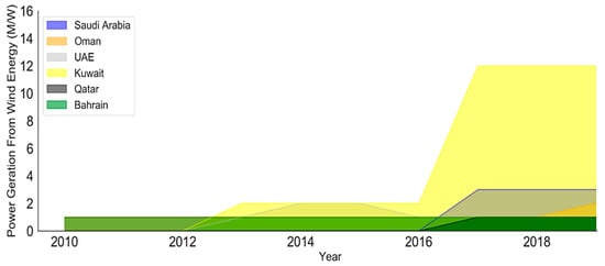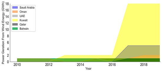Energy generation from wind energy in GCC region, 2010–2019.
