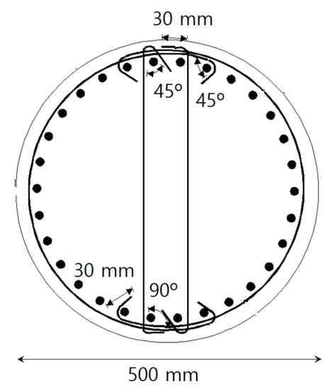 The transverse reinforcing bars of reinforced concrete columns contribute to the confinement effect to increase ductility during bending behavior. For this, the transverse reinforcing bar must withstand the tensile force. However, since transverse reinforcing bars are difficult to make into continuous reinforcing bars, they are traditionally composed of columnar hoops and cross ties. In this case, the design details of hoops and cross ties are very important, and an experimental study has been conducted on this [10,11,12]. In order to improve this, spiral reinforcement detail using a continuous transverse reinforcing bar is applied, so it has very high ductility [13,14].