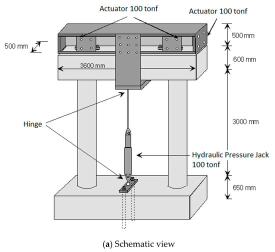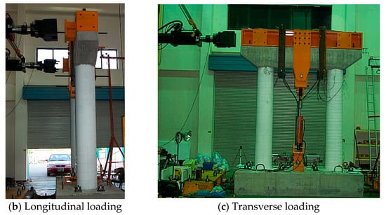 Studies on seismic detail in the plastic hinge region have been performed on single-column piers. However, there are many multi-column piers, and their behavior is different from that of single-column piers. Studies on the fracturing of beam–column junctions of multi-column piers with relatively weak cap beams or shear failure of the cap beam [24], a study on the reinforcement method of the cap beam [25], and a study on the design guidelines for multicolumn piers [26] were performed. Since the behavior of multi-column piers is different in both directions, it is necessary to evaluate the behavior characteristics of each direction experimentally. The bidirectional experiment can be performed as a shaking table experiment [27]. However, in order to know the seismic capacity in each direction, an experiment on the horizontal load in each direction is required.