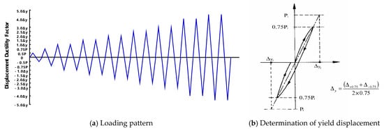 The load patterns are illustrated schematically in Figure 5. The formula proposed in Equation (1) was used to determine the yielding displacement [29].