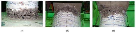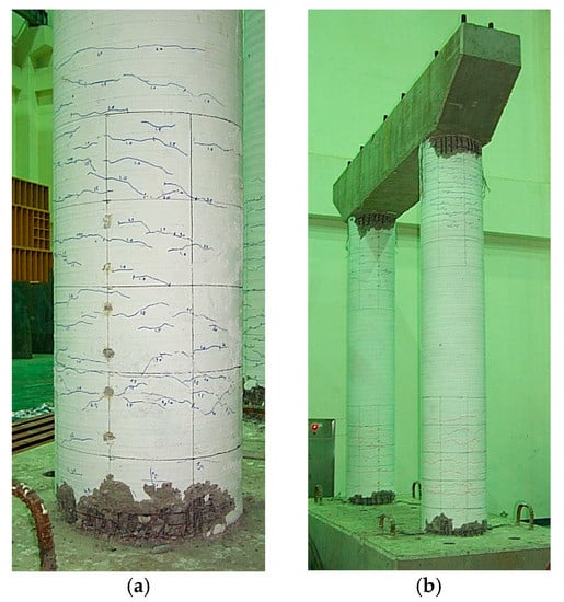 In order to increase the ductility of reinforced concrete piers that behave in flexure, it is necessary to prevent compressive failure of the concrete in the cross section by bending. For this purpose, core concrete is confined by a transverse reinforcement bar. The confinement effect at the plastic hinge region of the pier column during earthquakes increases seismic capacity due to ductile behavior [3,4]. In the case of installing sufficient transverse reinforcement, considerable flexural ductility is exhibited while maintaining the load resistance capacity even after the plastic hinge occurs [5,6]. Even if the transverse reinforcement bar ratio is the same, if the spacing is small, the confinement effect increases [7]. Therefore, the horizontal reinforcement ratio is an important variable in seismic detail. This confinement effect can be expressed by transverse reinforcing bars, but can also be implemented through appropriate techniques such as fiber straps [8,9].