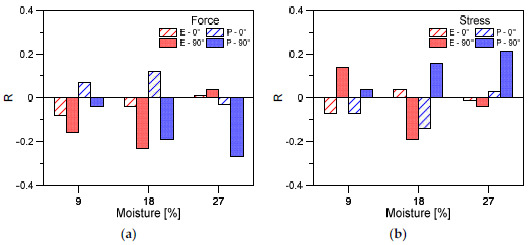 For sake of clarity, the specimens are labelled to detect the type of glue (“E” or “P” for epoxy and polyurethane), the moisture content (9%, 18% or 27%), the rod-to-grain orientation (“0°” or “90°” for parallel or perpendicular arrangement) and the sample number n for each group. The full set of pull-out test results is presented in Appendix A.