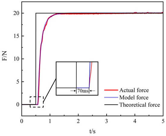 When the input was a step signal with an amplitude of 20 N, the response curve of the output force obtained was as shown in Figure 16.