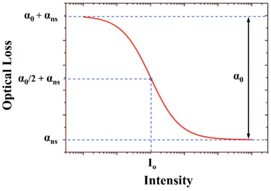 where is a non-saturation component of optical loss and is a total optical loss difference, and is a saturable intensity.
