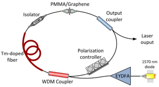 Tm-doped fiber laser system incorporated with a sandwiched graphene SA module. Reprinted with permission from [79].