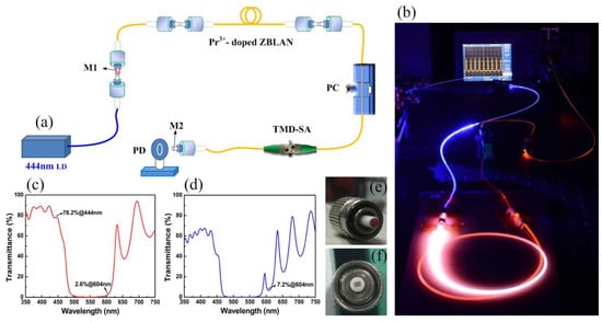 - Li, W.; Peng, J.; Zhong, Y.; Wu, D.; Lin, H.; Cheng, Y.; Luo, Z.; Weng, J.; Xu, H.; Cai, Z. Orange-light passively Q-switched Pr3+-doped all-fiber lasers with transition-metal dichalcogenide saturable absorbers. Opt. Mater. Express 2016, 6, 2031. [Google Scholar] [CrossRef]