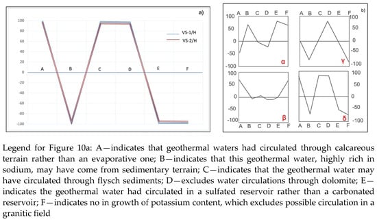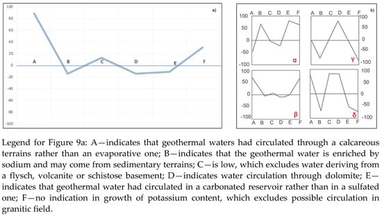 (a) D’Amore parameters diagram of chemical analyses; (b) α: evaporative terrains; β circulation in limestone; γ: circulation through a crystalline basement; δ: circulation in argillaceous rocks.