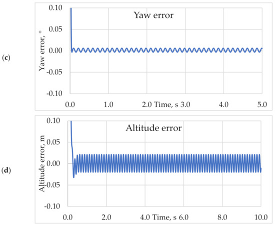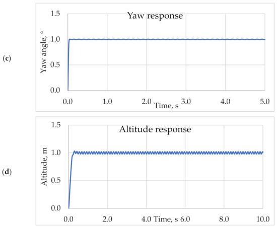 Typically, the translational and rotational dynamics of the quadrotor can be decomposed into four separate subsystems as given in Equations (4)–(7) below: