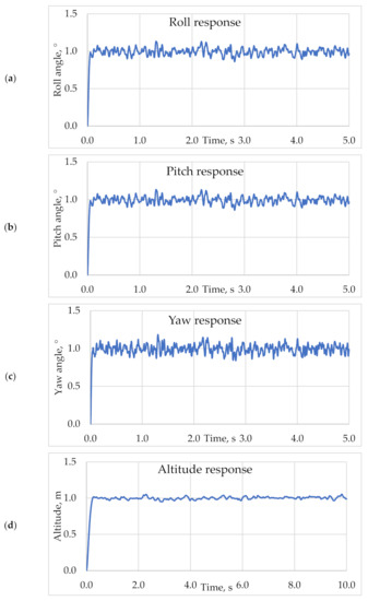 - Erkol, H.O. Attitude controller optimization of four-rotor unmanned air vehicle. Int. J. Micro Air Veh. 2017, 10, 42–49. [Google Scholar] [CrossRef]