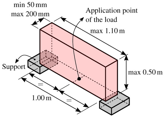 The technique was applied to a small-scale bridge model made from spaghetti sticks, built by undergraduate students taking part in a contest, in order to illustrate the effectiveness of the global parameters’ evolution obtained from an AE analysis method as predictors of structure collapse. The idea of spaghetti bridge contests was initially proposed in the Okanagan College in 1980 [40], to motivate the students in the basic concepts of building actual structures. Nowadays, similar initiatives occur in several educational institutions around the world. The structure that was analyzed here was built for the contest at the Engineering School of Federal University of Rio Grande do Sul (UFRGS), which occurs twice a year since 2004. Participation in the context is mandatory for Civil Engineering students, but it is also open to students from all other Engineering programs. This bridge model complies with all guidelines for the contest (geometric restrictions, mass limits, load application, etc.), described in detail in [41,42], and its main geometric parameters appear in Figure 7.
