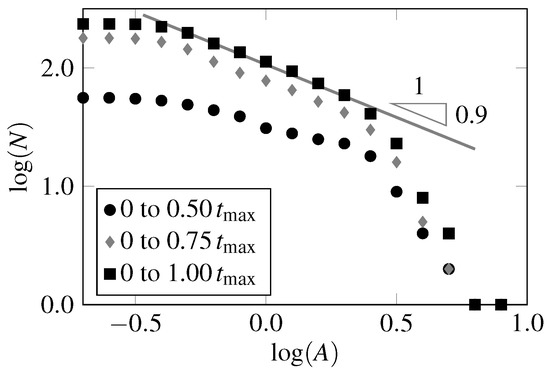 - In [47], a comparative analysis is made between a prismatic specimen under uniaxial compression and a pre-fissured beam under flexion on three points. Both of the structures were made from concrete, and the comparison was carried out by both numeric and experimental means. The results are summarized in Figure 18, making it clear that geometry and boundary conditions significantly influence structural behavior. For instance, the histogram for the beam tends to horizontal for small magnitudes, because new ruptures tend to occur at the extremities of the pre-fissures, favoring the localization of avalanches and connection between events. As for the prismatic specimen, ruptures are equally likely to appear at every part of its structure in the initial phases, with localization only occurring for advanced stages of the damage process.