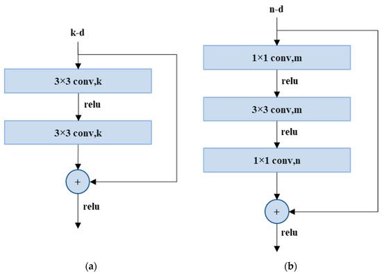 ResNet building block. (a) BB-I, k; (b) BB-II, m, n [28].
