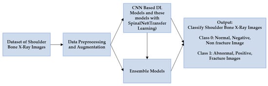 Section 3 discusses the CNN-based built deep learning models, such as ResNet, DenseNet, VGG, and InceptionV3, used in classification as well as their adaptations with Spinal FC and the proposed ensemble learning models. Section 4 explains the open source dataset, including the shoulder bone X-ray images, data augmentation, and data pre-processing procedures applied thereon, a table containing the accuracy, recall, F1-score, and Cohen’s kappa scores achieved by classification models, and the results of classification, including a confusion matrix, ROC curves, and AUC scores. The last section interprets the results achieved by classification models and discusses the contribution of this study to the literature and improvements that can be applied in future work.