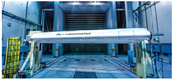 Fraunhofer has also investigated efficient aviation structures within the “Green Regional Aircraft” platform of the European Project “Clean Sky”. In this context, Fraunhofer LBF developed, manufactured, and tested a 1:1 scale smart morphing leading edge demonstrator. It was realised as a full-scale morphing leading edge of 3 m span for ground demonstration. The setup was also validated in a climate wind tunnel under icing conditions. Besides, the electromechanical morphing actuation system and additional technologies were integrated in the demonstrator like optical fibre Bragg grating sensors, for shape reconstruction and strain measurement as well as an ice protection system based on carbon nanotubes. Figure 1 shows the leading-edge demonstrator in the climate wind tunnel [25].