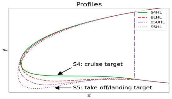 An option for the baseline shape is using one of the target shapes, either the aerofoil for cruise (S4) or for take-off/landing (S5), see Figure 13.