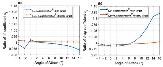 Calculated lift (a) and drag (b) coefficients for high-lift profiles.