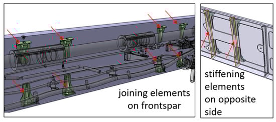 Joining elements for MLE attached to the front spar (left) and supporting stiffening elements on opposite side (right).