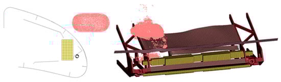 Keeping an eye on potential future certification of a morphing leading edge concept, one aspect to consider is the proof of bird strike resistance [36]. In particular, it must be shown that the bird does not damage the front spar of the wing and the fuel tank, as this might result in catastrophic failure of the fuel system and subsequent loss of the aircraft [37,38,39]. For this work, the proof of the bird strike resistance of the morphing leading edge was demonstrated by means of simulation. For this purpose, simulations of a bird (mass 2 kg) impacting the MLE at a velocity of 180 m/s were conducted using the explicit finite element software LS-DYNA. A summary of the simulation approach and results is given below. For further details, the reader is referred to [40].