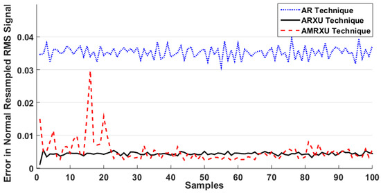 Error in AR, ARXU, and AMRXU techniques from normal resampled RMS signal modeling.