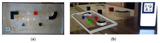 Additional collision checking is performed with obstacles belonging to the districts surrounding the district in which robot is currently positioned (due to the transition from one district to another). Typical robot surrounding real environment situation is shown in Figure 3. After each robot step, the environment is identified and detected by scanning with a laser range sensor. Augmented reality (AR) was used in experimental verification on a real polygon so that objects could be placed directly on the polygon, without the need for measurement. In the research, it was used as an aid in setting up a real polygon according to the 3D CAD model of the polygon, which was first modeled, and then used in the simulation.