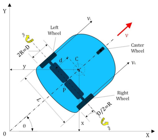 Model of the kinematics of a non-holonomic differential drive consisted of two wheels is illustrated in Figure 7, where: