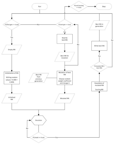 Flow diagram of neural networks and genetic algorithms (neuro-evolution).