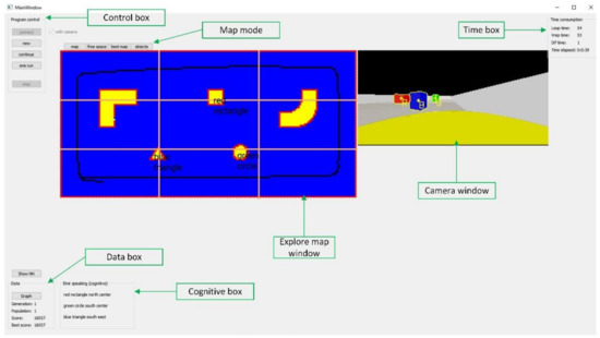 The proposed neuro-evolution learning is a cognitive navigation model that integrates cognitive mapping and the ability of episodic memory so that the robot can perform more versatile cognitive tasks. Three neural networks have been modelled for the construction of an environmental map. Neural networks have ten inputs representing laser range sensor beams (one beam every 36°). In two hidden layers, neural networks have 5, 10 or 15 neurons, with the corresponding biases. The neural networks also contain two outputs scaled to the mobile robot wheels velocities, described in Section 3. A system for storing and retrieving task-related information is also developed. Information between the cognitive map and the memory network is exchanged through appropriate encoding and decoding schemes. Neural network’s learning scores are tested in a simulation environment that is also developed in this research. The cognitive system is eventually applied to the real mobile robot’s system. Exploration, localization and navigation of the mobile robot are performed using this information data implementation. Real mobile robot experiments in the final experimental verification and validation proved the efficiency of the proposed system.