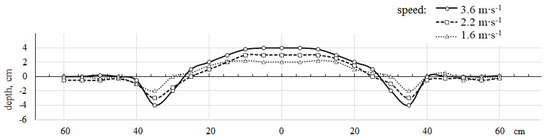 The surface of tramlines was influenced majorly by working speed and particularly by variation of tines shapes. Soil surface was formed mainly by opposite discs, that at highest speed (3.6 m∙s−1) supplementary upthrow and formed higher soil pile (Figure 7). Moreover, better lifting, crusting of soil layer and more intense straw mixing with both tines’ shapes were observed at this faster speed.