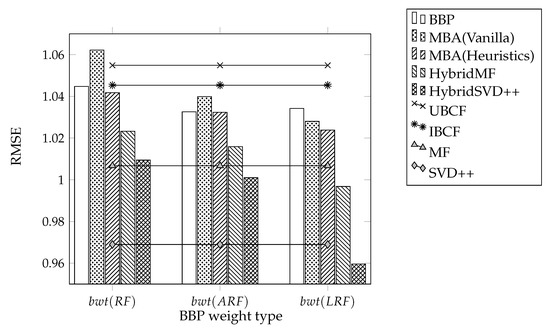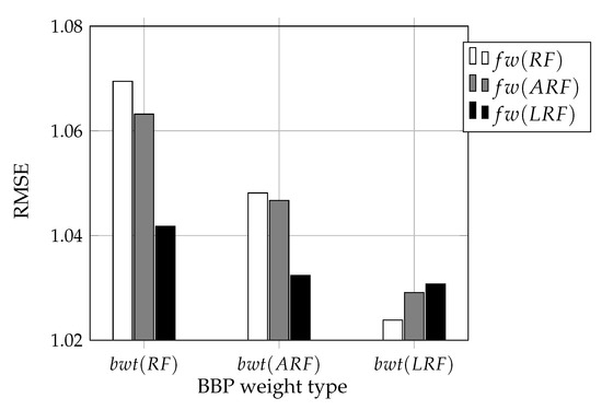 is the set of rated scores that belong to feature f in the training set . Because the number of weight types of BBP is 3 in total (RF, ARF, and LRF), the experimental results for Case A have the number of cases of 9 ().