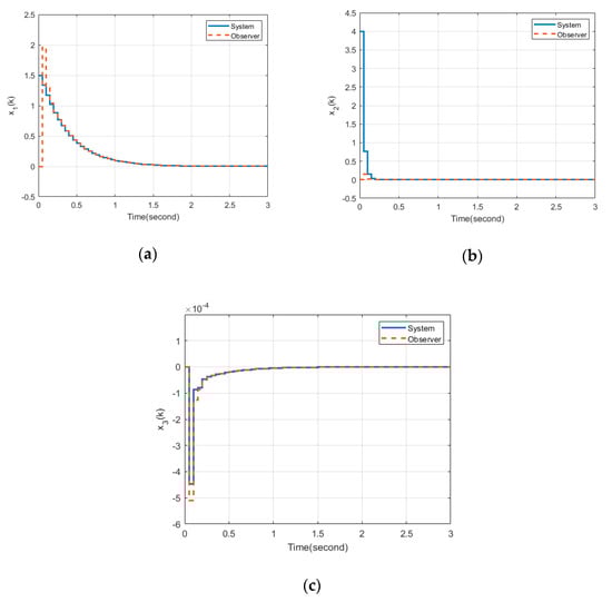 Figure 2. From the simulation results, it can be found that the stability of the system (32) is achieved and the proposed fuzzy observer has been successfully employed to design a PD-based fuzzy controller. These results illustrated the proposed design method’s effectiveness and superiority.