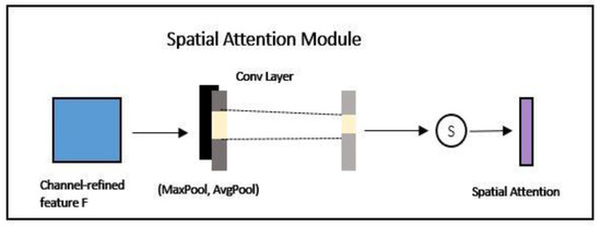 In the spatial attention module as shown in Figure 7, in order to generate the spatial attention map, the spatial attention module uses average pooling and max-pooling operations on the channel attention feature to generate the average-pooled features and the max-pooled features across the channel. Then, the concatenation and convolution are used to produce the spatial attention map.