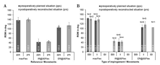 3.1. Comparison of ROM and Predominant Impingement Type between the Preoperatively Planned and Postoperatively Reconstructed Situation