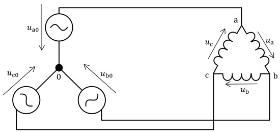 Figure 1 shows the basic winding diagram of the star- and delta-connected IM. If the machine is star-connected (Figure 1a), then the measured currents at the inverter output directly correspond to the phase current of the individual windings. The transformation of the measured currents to the phase current space-vector can be expressed as