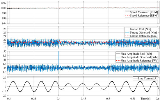 Figure 9 demonstrates the consequences of not respecting the winding topology in the control algorithm. If the control system is not adjusted to the winding configuration, then the machine operates either in an under-excited or over-excited state, and the estimated torque and flux do not agree with the actual ones.