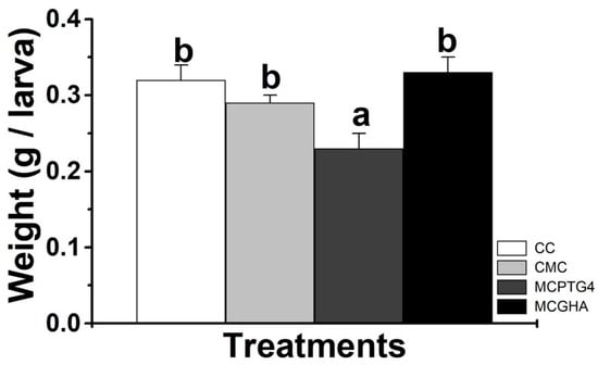 | Stages | CC (30 Larvae) | CMC (33 Larvae) | MCPTG4 (30 Larvae) | MCGHA (30 Larvae) |