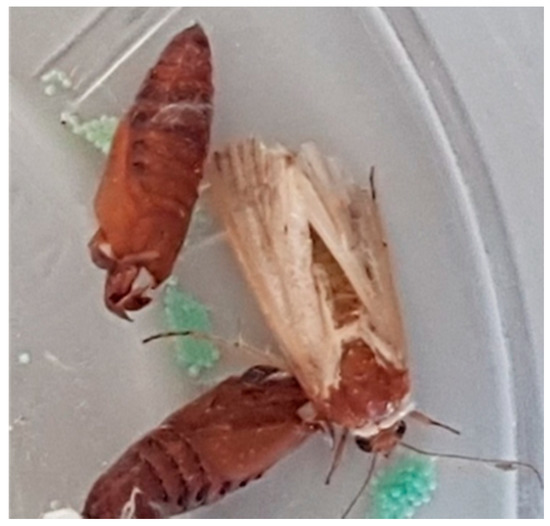 | Pupa | 83.33% a,b (25/30) | 91% a,b (30/33) | 62.96% a (17/27) | 100% b (22/22) |