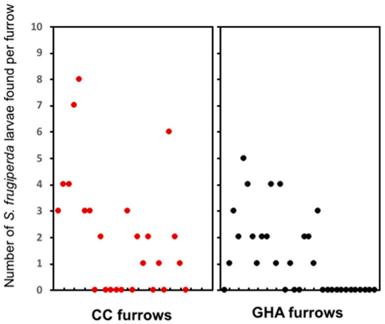 | Still larva | 3.33% a (1/30) | 3% a (1/33) | 22% b (6/27) | 0 a |