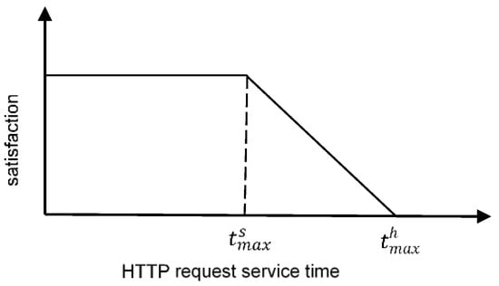 where is the “soft time” after which satisfaction starts decreasing to 0 and is the “hard time” after which the user will leave the page. Figure 5 presents the satisfaction in the service time function. In experiments, it was assumed that and .
