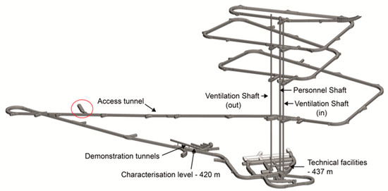 - Palomäki, J.; Ristimäki, L. (Eds.) Facility Description 2012; WR 2012-66; Posiva Oy: Eurajoki, Finland, 2013. [Google Scholar]