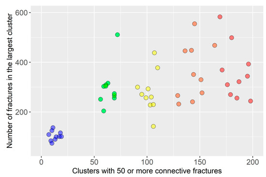 - Tóth, T.M.; Vass, I. Relationship between the geometric parameters of rock fractures, the size of percolation clusters and REV. J. Math. Geosci. 2011, 43, 75–97. [Google Scholar] [CrossRef]