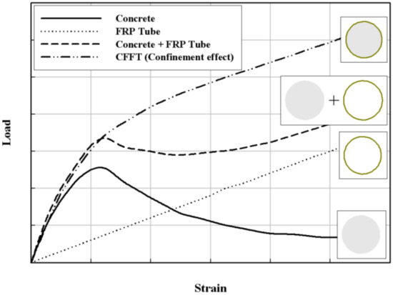 Confinement effect of fiber-reinforced polymer (FRP).