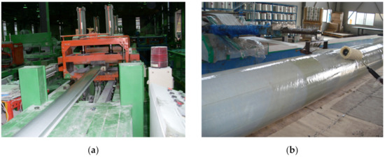 Manufacturing process of the hybrid−FRP member: (a) pultrusion process; (b) filament winding process.