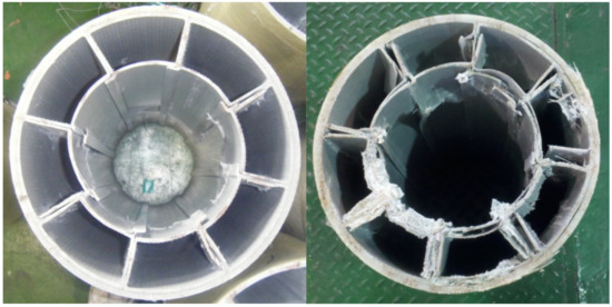 Compressive strength testing result of PFRP−FFRP.