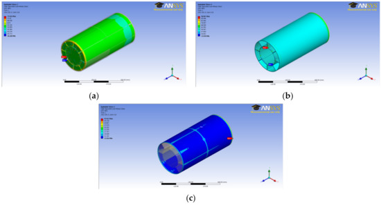 FEA of the hybrid−CFFT: (a) Concrete, (b) PFRP, and (c) FFRP.