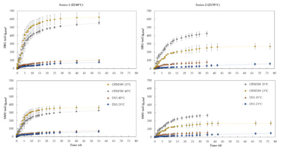 | OFMSW, series 1 and 2 | 33.28 ±5.43 | 77.88 ±1.37 | 39.49 ±2.55 | 5.29 ±0.35 | 2.13 ±0.32 | 30.97 |