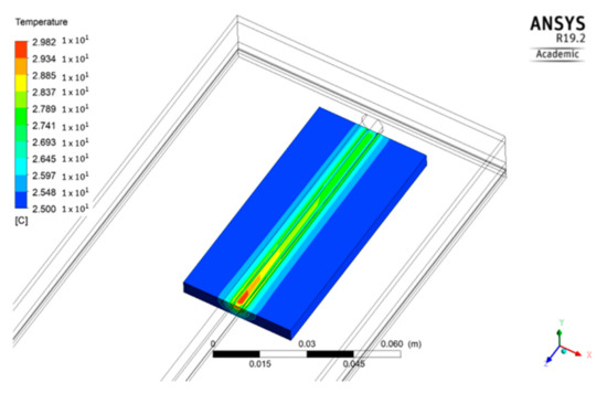 In this paper, a three-dimensional numerical simulation of the PVT panel and the PVT panel with TEGs has been performed in the software ANSYS [45]. The 3D analysis is selected due to the serial configuration of the TEGs integrated along the tube. This application works under the finite element method for structural analysis and the finite volume method in the case of fluid studies. This software includes different work modules that allow the study of structural, thermal, electrical, and fluid dynamics aspects. In this case study, module Fluent is employed, which is a computation fluid-dynamics (CFD) simulator.