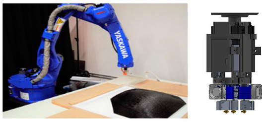 - Yoon, Y.J.; Minsok, Y.; Sung, E.J.; Satzandra, K.G. Developement of three-nozzle extrusion system for conformal multi- resolution 3D printing with a robotic manipulator. In Proceedings of the ASME 2019 International Design Engineering Technical Conferences and Computers and Information in Engineering Conference, Anaheim, CA, USA, 18–21 August 2019; p. 11. [Google Scholar] [CrossRef]
