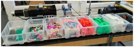 The second problem was the implementation of the shapes of other components in the design of new models. As shown in Figure 14, the mounting of motors and linear technology often interfered with the proposed models, not excluding the fact that all these models had to correlate with the aluminium profiles and their grooves’ dimensions. This fact required a specific set of the parameters of printing and extrusion of the equipment’s material on which the production of models was carried out. We achieved an ideal material extrusion with the right settings, which allowed us to create components with a non-conflicting shape and the correct dimensions. These components then easily landed in the specified place, in correlation with the developed CAD model.