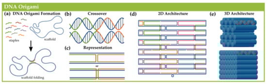 - Rothemund, P.W.K. Folding DNA to Create Nanoscale Shapes and Patterns. Nature 2006, 440, 297–302. [Google Scholar] [CrossRef]